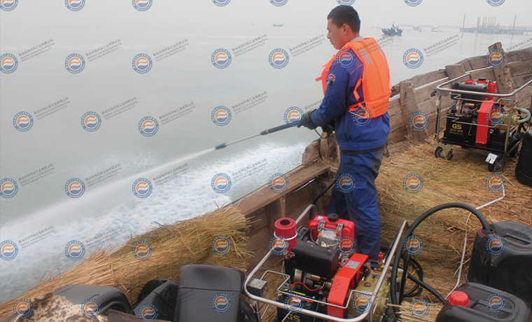 The marine fixed dispersant spraying device for oil spill is a large spraying device mounted on both sides of the ship. It is composed of hydraulic pump station, spraying arm, handheld spray gun and etc. It can be carried along with the ship to clean up large areas of oil spill on the water surface.