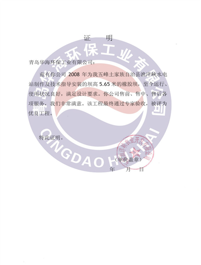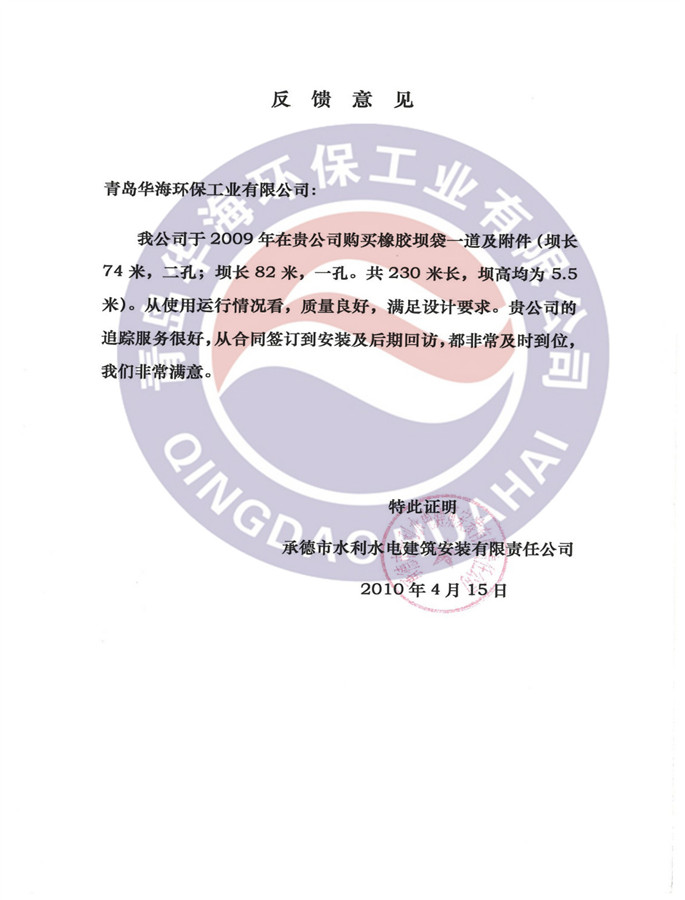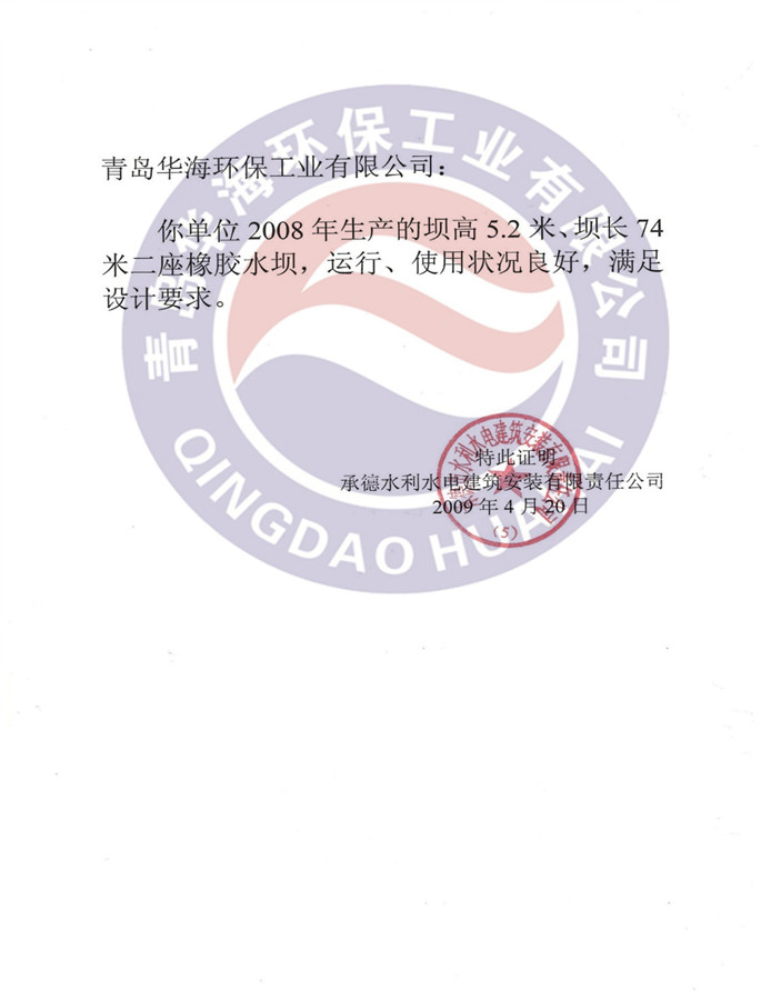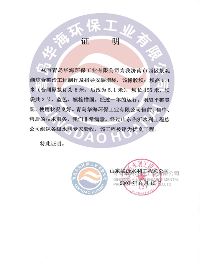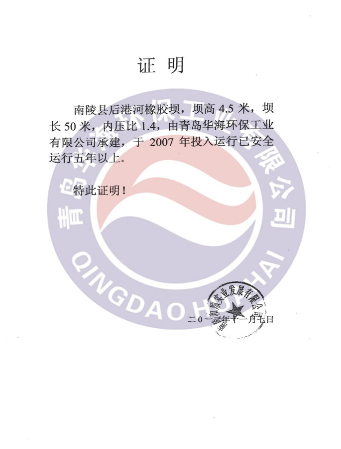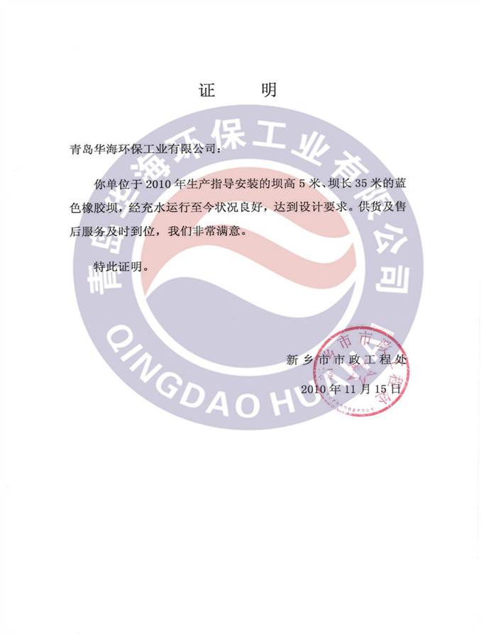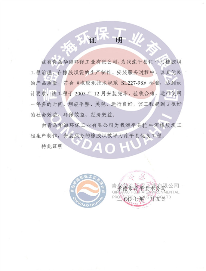 04公司拥有完善的售后服务体系,配备高水平、高质量的专业技术服务人员30余名,其中多人拥有20年以上行业经验。公司深耕橡胶坝、气盾坝和溢油防治设备生产与研发30余年,参与制定多项行业标准。