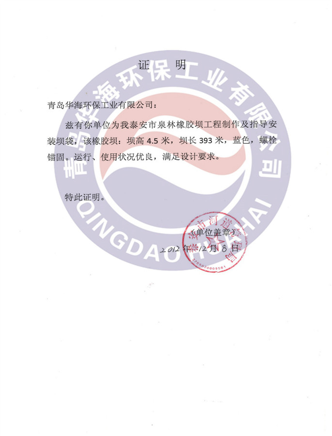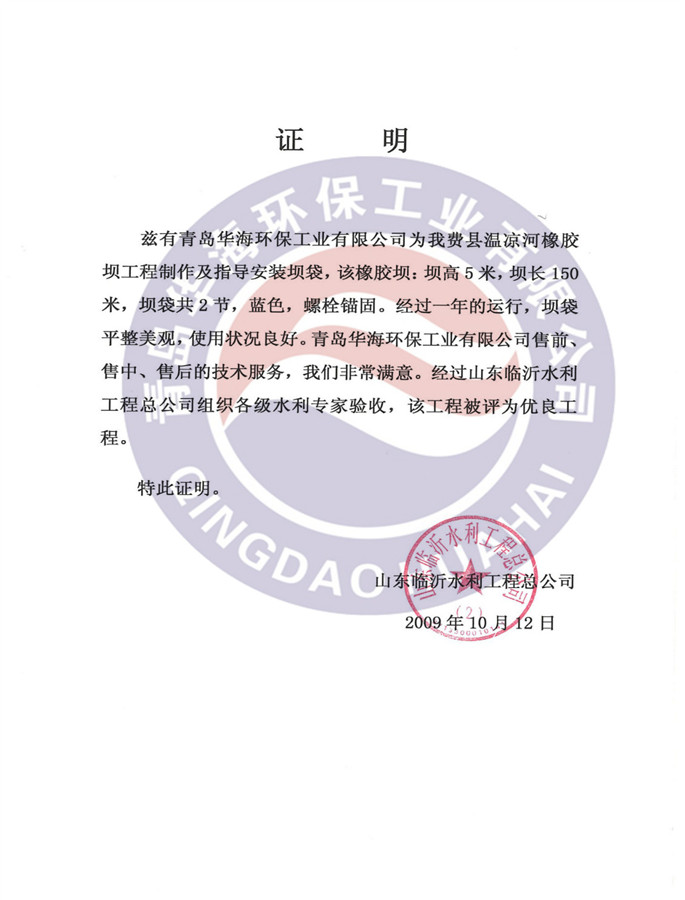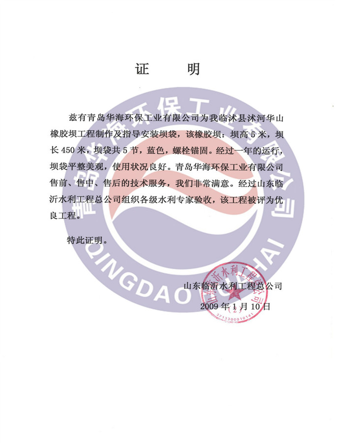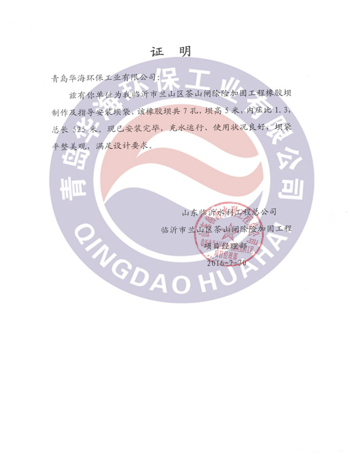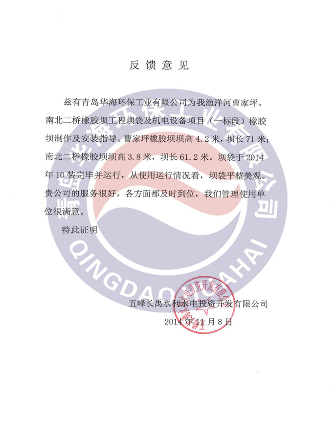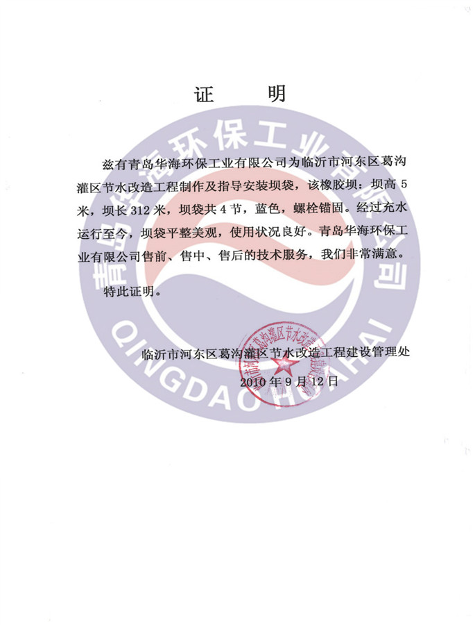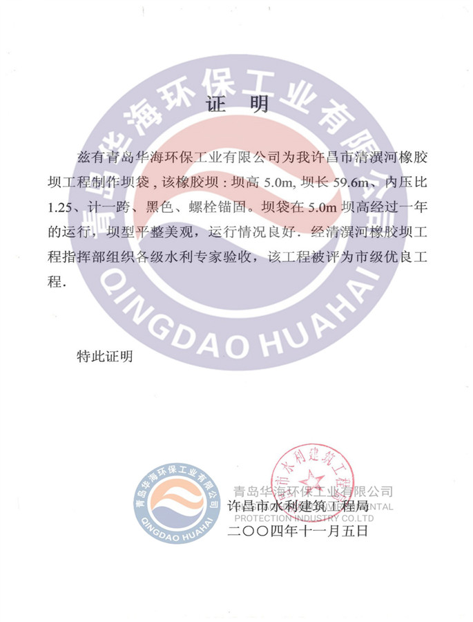 04公司拥有完善的售后服务体系,配备高水平、高质量的专业技术服务人员30余名,其中多人拥有20年以上行业经验。公司深耕橡胶坝、气盾坝和溢油防治设备生产与研发30余年,参与制定多项行业标准。