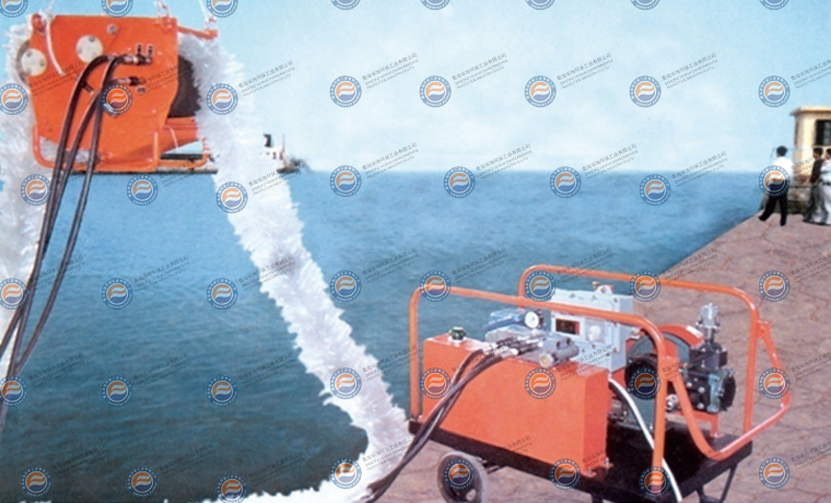 The power station operates with the hydraulic oil pump and oil delivery pump driven by diesel engine or motor. The main unit is composed of the extruding roller unit, oil collecting channel, frame, hydraulic oil hose, oil pipeline and other parts. The main unit is hung at the ship’s side above the water (the desktop skimmer is set on the shore) while the power station is located on the boat or shore.