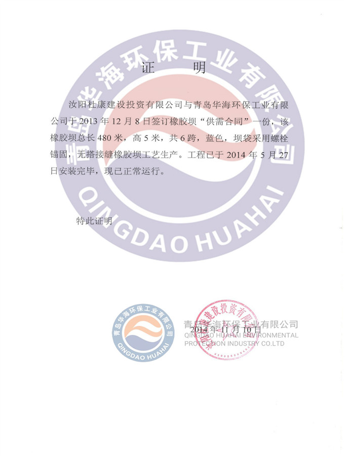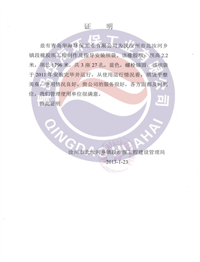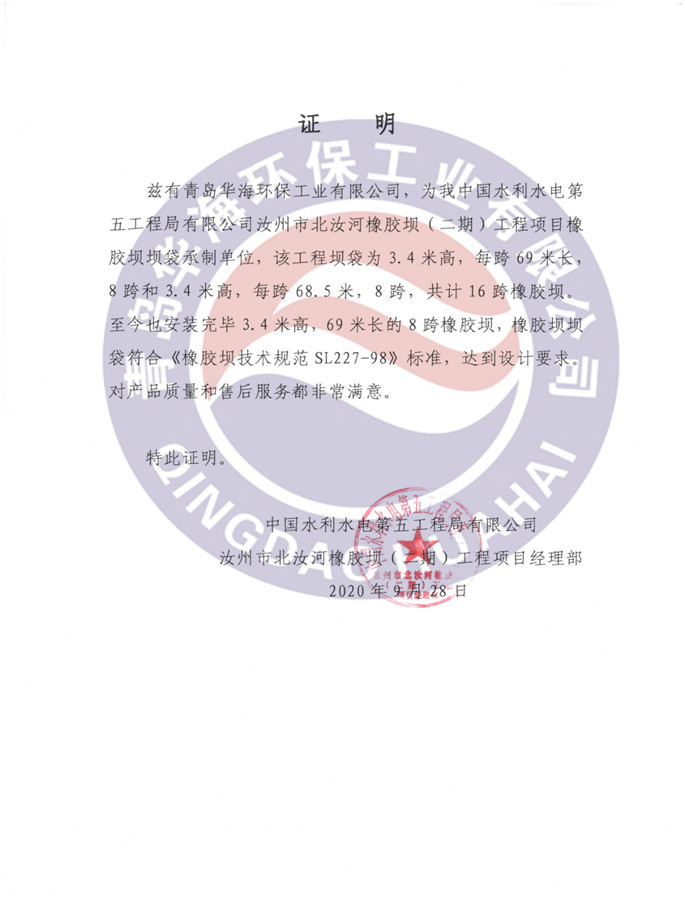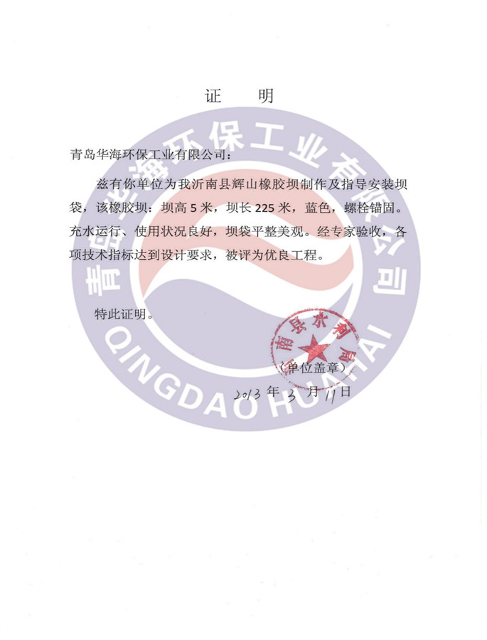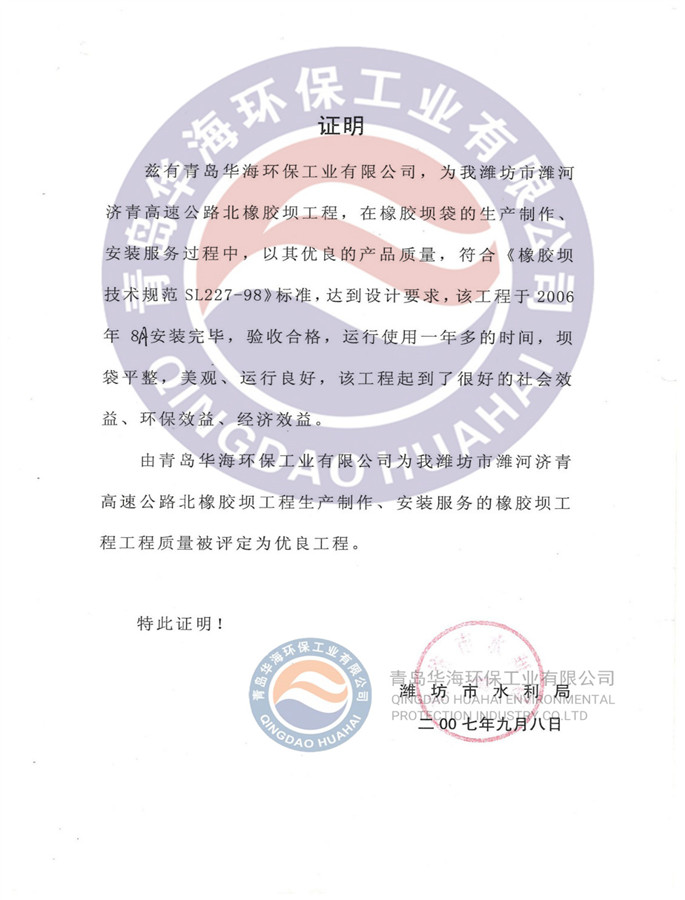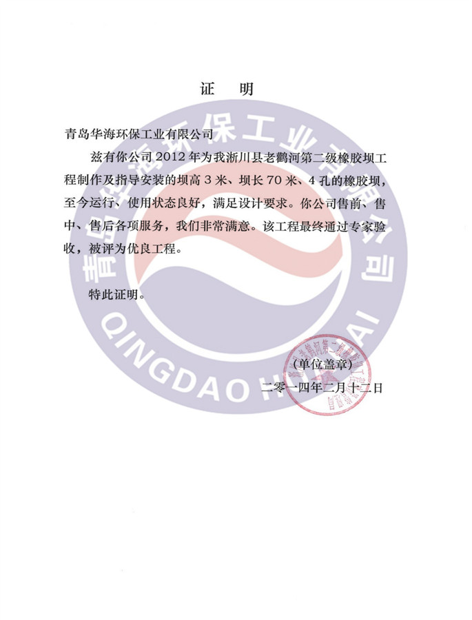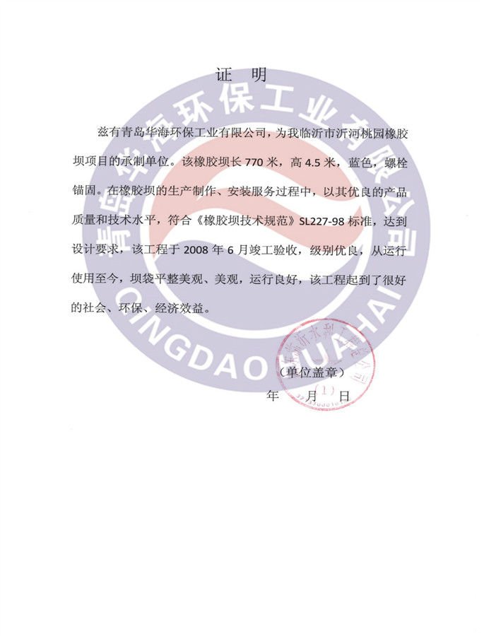 04公司拥有完善的售后服务体系,配备高水平、高质量的专业技术服务人员30余名,其中多人拥有20年以上行业经验。公司深耕橡胶坝、气盾坝和溢油防治设备生产与研发30余年,参与制定多项行业标准。